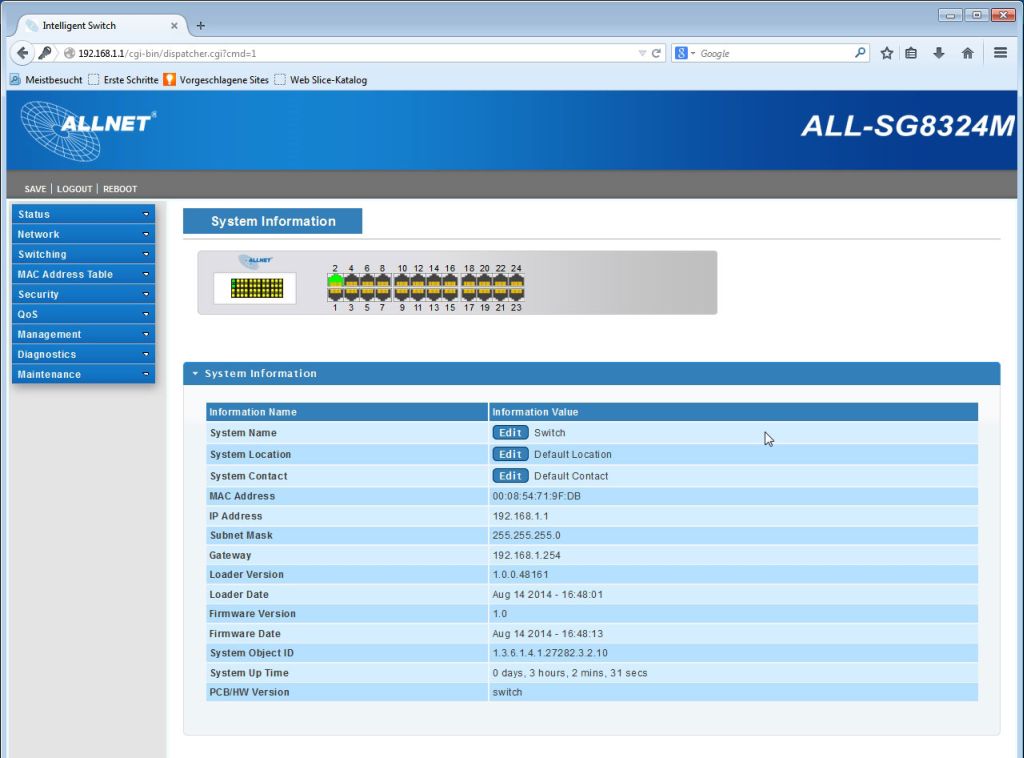 Produktinformationen "ALLNET Switch smart managed 24 Port Gigabit / 24x LAN / Lüfterlos / 19" / "ALL-SG8324M""