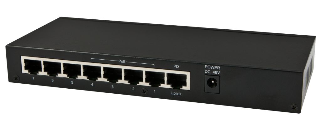 Der ALL-SG8208PD unterstützt PoE pass-through, er vereint PD (Powered Device) und PSE (Power Sourcing Equipment) in einem Gerät, was bedeutet, dass der Switch über den PD Port von einem PSE Gerät über Netzwerkkabel (CAT 5 oder höher) mit Strom versorgt werden kann, gleichzeitig kann er aber auch weitere Geräte über die beiden PSE Ports mit Strom versorgen.